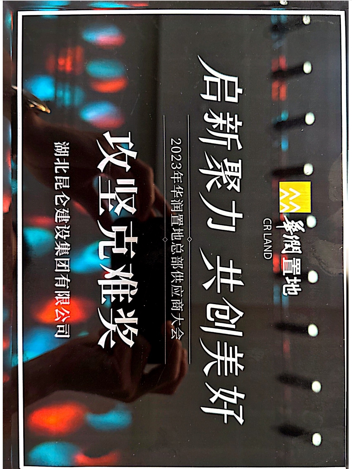 2023年5月榮獲華潤置地供應(yīng)商“攻艱克難獎”